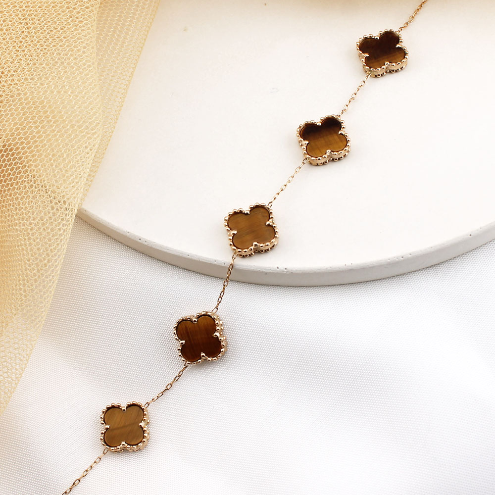 دستبند پنج گل ونکلیف با گلهای قهوه ای رنگ به وزن ۲/۷۳۰ گرم و اجرت ۱۳%